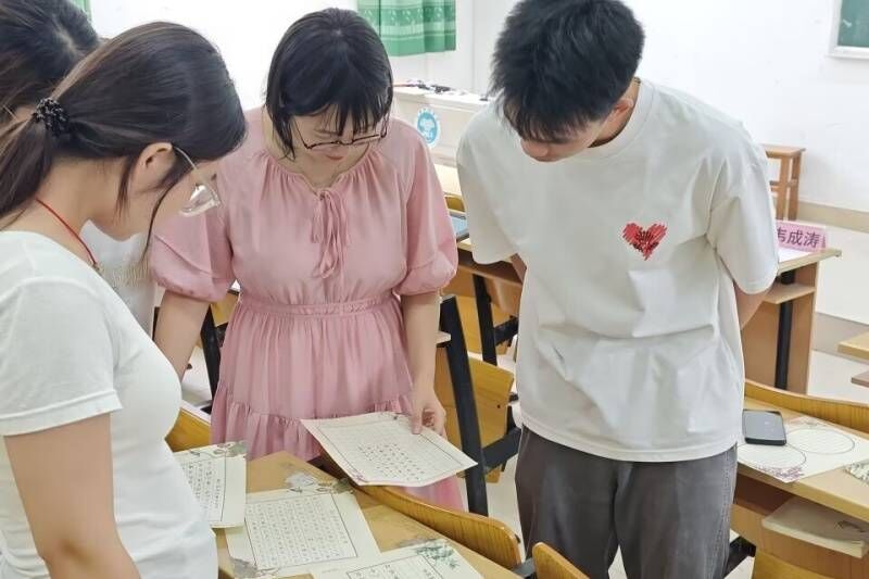 本次三笔字比赛共分为粉笔字、毛笔字、硬笔字三个项目。赛前,主持人介绍本次比赛的嘉宾、评委,并宣读比赛规则。随后,参赛选手们迅速投入到紧张而富有激情的创作当中,一笔一划尽显书法功力。粉笔字区域,他们或站或蹲,于方寸黑板间勾勒知识的轮廓,字迹工整有力,仿佛能听到知识的声音在教室回荡;毛笔字区域,宣纸轻铺,墨香四溢,选手们挥毫泼墨,将传统文化之美诠释得淋漓尽致;硬笔字部分,则是细腻与刚劲的完美结合,字里行间透露出扎实的书写功底和对美的追求。郑薇薇高度关注选手们创作过程,不时给予鼓励和指导,现场氛围热烈而温馨。评委们则根据字体规范、书写工整、布局合理等标准,对参赛选手的作品进行打分。