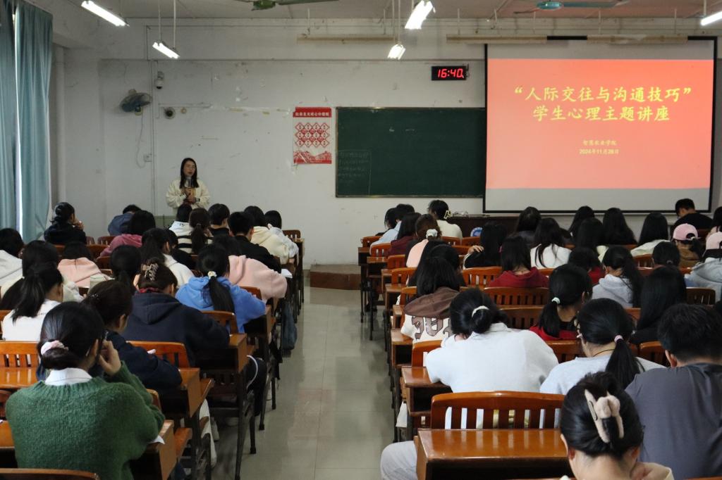 11月28日下午,m88在线客服于我校东校区厚德楼1301教室举办“人际交往与沟通技巧”学生心理主题讲座,此次讲座由辅导员林小欣主讲,各班班委及受助学生代表参加。
