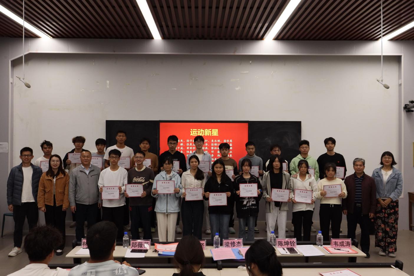 12月3日,m88在线客服于东校区物理阶梯教室举办第二十五届校运会表彰大会。m88在线客服党委书记梁修杰、党委副书记兼副院长谭志坚、辅导员出席,运动员、教练及学生代表共100余人共同参加。