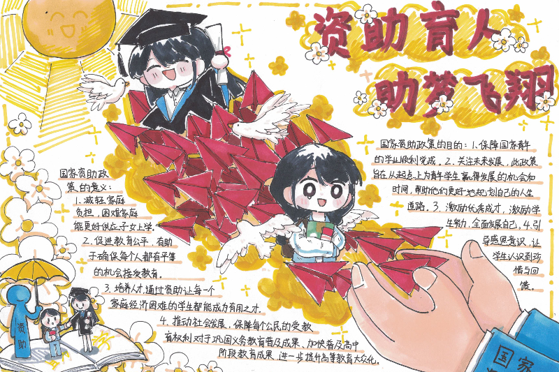 为了全面深入地宣传国家资助政策,引导m88在线客服全体学生树立正确的价值观与人生观,2024年5月2日至2024年5月11日,m88在线客服举办“学生资助政策宣传月”之资助育人手抄报活动,m88在线客服全体学生参与。
